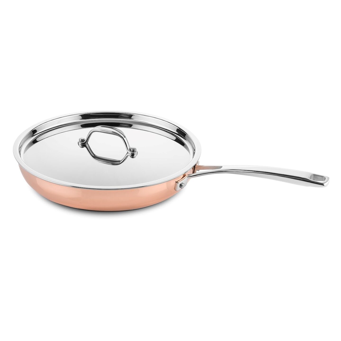 3-ply koperen braadpan - DUCQ koperen koekenpan 26 cm is niet alleen fraai in design maar is ook van uitstekende kwaliteit en afwerking. De pan is opgebouwd uit 3 lagen (3-ply): koper aan de buitenzijde, roestvrijstaal (RVS) aan de binnenzijde en een aluminium tussenlaag. Dit resulteert in een pan met voelbare kwaliteit (wanddikte 2,5 mm) en met een uitstekende warmteverdeling die gewaardeerd wordt door iedereen met een passie voor bakken en koken.