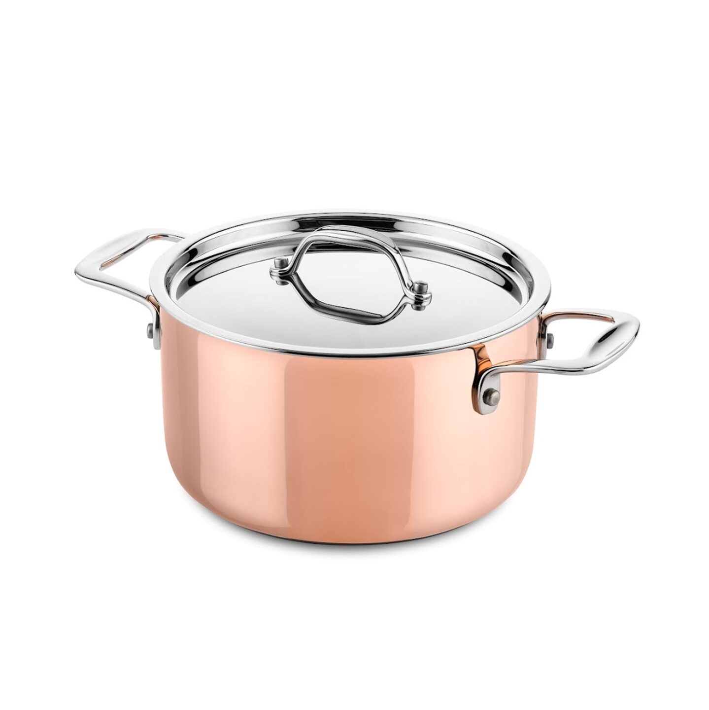 3-ply koperen kookpan - DUCQ koperen kookpan 20 cm is niet alleen fraai in design maar is ook van uitstekende kwaliteit en afwerking. De kookpan is opgebouwd uit 3 lagen (3-ply): koper aan de buitenzijde, roestvrijstaal (RVS) aan de binnenzijde en een aluminium tussenlaag. Dit resulteert in een pan met voelbare kwaliteit (wanddikte 2,5 mm) en met een uitstekende warmteverdeling die gewaardeerd wordt door iedereen met een passie voor koken.