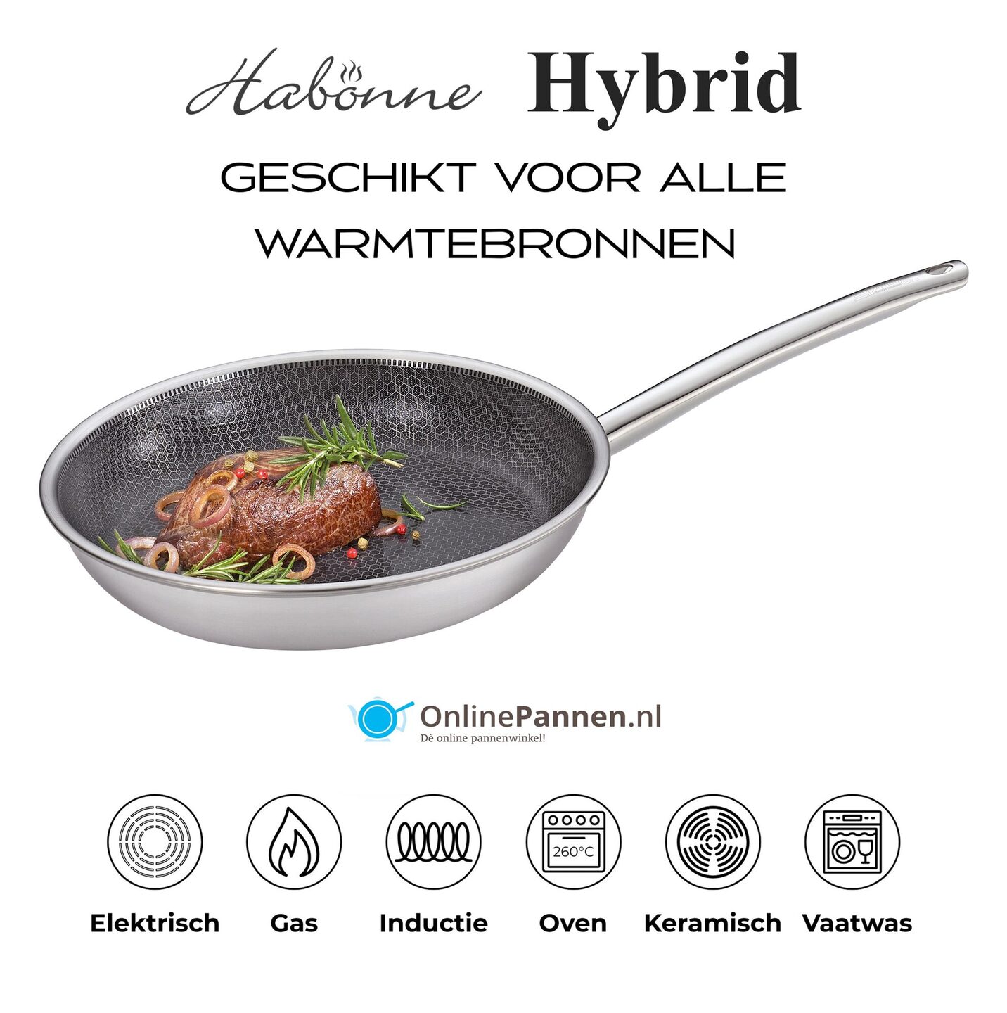 De Habonne Hybrid koekenpan 28 cm is niet alleen sterk, maar ook zeer gebruiksvriendelijk. De pan is makkelijk schoon te maken en kan gewoon in de vaatwasmachine. Dankzij de combinatie van innovatie, kwaliteit en duurzaamheid is dit dé pan die jarenlang met je meegaat. Bestel nu bij OnlinePannen.nl en ervaar de kracht van Habonne Hybrid in je eigen keuken!