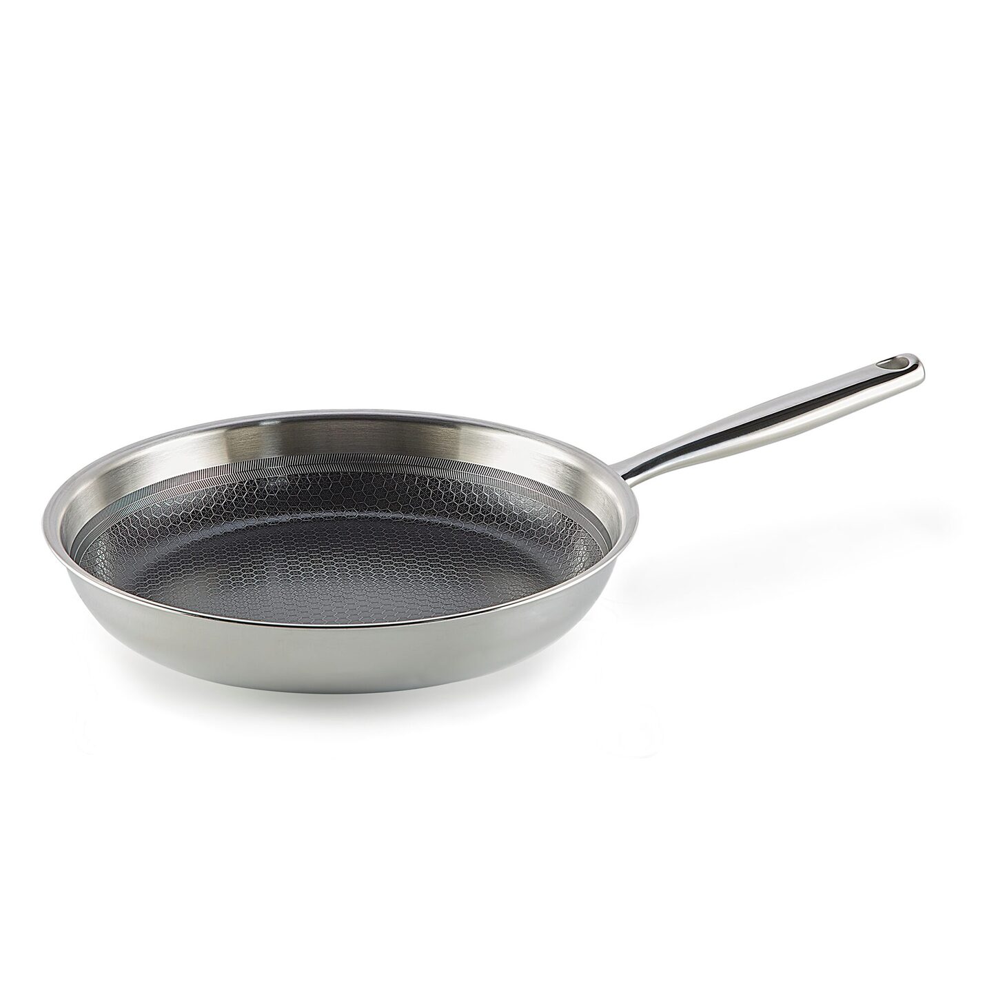 Het unieke honinggraatmotief van roestvrij staal beschermt de antiaanbaklaag tegen krassen, waardoor je zelfs met metalen spatels kunt werken. Dit patroon zorgt daarnaast voor een perfecte verdeling van olie en warmte, zodat je gerechten niet snel aanbakken. Of je nu een omelet, gebakken aardappelen, kip of een stuk vlees bereidt, met deze pan krijg je altijd een mooi bruin en krokant resultaat. De stevige gepuntlaste steel blijft koel op inductie en is hygiënisch doordat er geen vuil kan ophopen.
