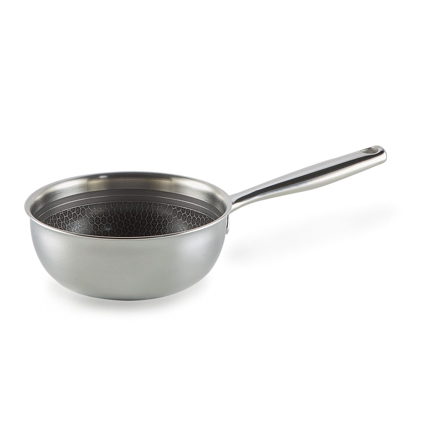 Het honingraatpatroon zorgt niet alleen voor bescherming, maar ook voor een gelijkmatige verdeling van vet en warmte, zodat sauzen, groenten of kleine vleesgerechten altijd perfect slagen. Bovendien blijft voedsel minder snel kleven, waardoor je ook nog eens gezonder en met minder vet kookt. Het stalen reliëf zorgt ervoor dat de pan heet genoeg wordt voor een heerlijk krokant bakresultaat, iets wat gewone antiaanbakpannen vaak niet kunnen. De gepuntlaste steel maakt de sauspan extra hygiënisch, omdat vuil en bacteriën zich niet kunnen ophopen bij schroeven of klinknagels. Daarbij blijft de steel koel op inductie, wat het kookcomfort verhoogt. Met de Habonne Hybrid sauspan 18 cm kies je voor duurzaamheid, gebruiksgemak in jouw keuken.