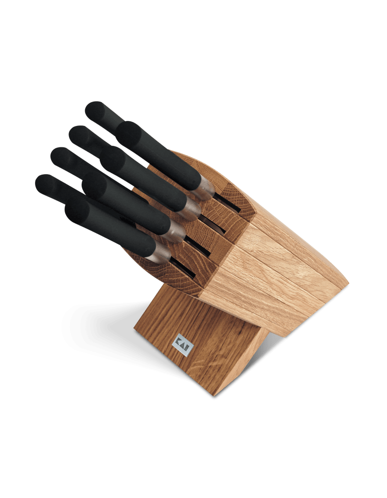 Messenblokken van KAI zijn een optimale aanvulling op het gehele koksmessen assortiment. De producten zijn tijdloos, worden met de hand vervaardigd en voldoen aan de hoogste eisen en normen op het gebied van kwaliteit en design. Vandaar ook dat aan de kwaliteit van de grondstoffen hoge eisen worden gesteld. Bovendien speelt bij de productie de schoonheid en het veelzijdige karakter van de gebruikte houtsoorten een even grote rol als de duurzaamheid en milieuverantwoordelijkheid. De duurzaamheid van de producten komt overeen met de levenscyclus van de gebruikte houtsoorten. Dat betekent dat de grondstof voor de gegenereerde objecten in de tijd van het gebruik weer kan aangroeien.