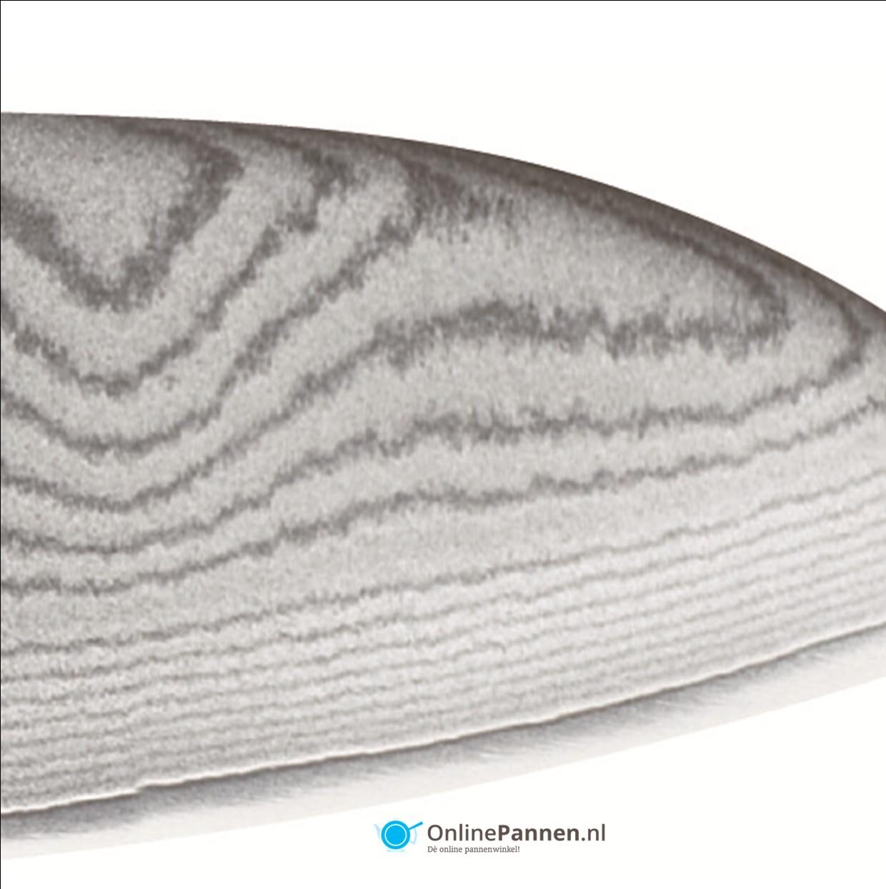 De serie Shun Classic verenigt eeuwenoude Japanse Samurai smeedkunst met de moderne en technisch doorontwikkelde productiemethodes van onze huidige tijd. Met als resultaat een zeer hoogwaardige Damast messenserie, die tot in het kleinste detail is geperfectioneerd met de focus op een langdurig blijvende scherpte. Mede hierdoor zijn de Shun Classic messen ook bij uitstek geschikt voor gebruik in de professionele keuken. De karakteristieke gematteerde nerfstructuur van het uit 32 samengevoegde lagen bestaande Damast staal geeft het lemmet van de Shun Classic messen een mooi aanzien. In combinatie met de elegante, slank toelopende greep uit zwart Pakkahout, ontstaat er een esthetisch totaalconcept gebaseerd op kwaliteit en functionaliteit.