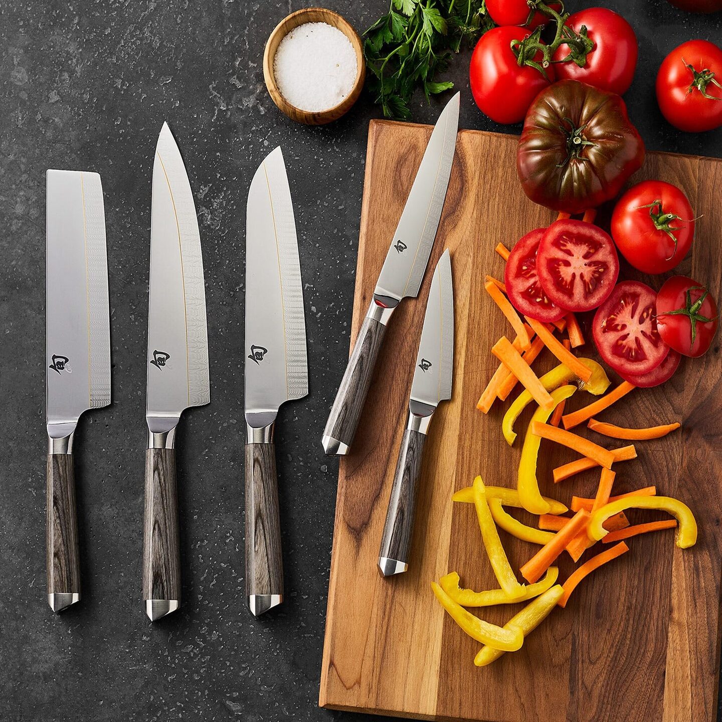De Kai Shun Kagerou messenserie staat voor innovatieve precisie en verfijnd Japans vakmanschap. Deze messen combineren een indrukwekkend design met hoogwaardige materialen en een uitzonderlijke afwerking. Dankzij de geavanceerde Composite Blade Technology leveren ze langdurige scherpte en uitstekende snijprestaties. Het lemmet bestaat uit maar liefst 71 lagen staal, gevormd door een innovatief smeedproces met VG2- en VG10-staal. Deze combinatie zorgt voor een perfecte balans tussen flexibiliteit, duurzaamheid en extreme scherpte. Het unieke dual-core damastpatroon langs de snede doet denken aan een gloeiende hittegloed boven vlammen. De elegante grijs gemêleerde pakkahouten handgreep ligt comfortabel in de hand en biedt maximale controle. Door de naadloos overlopende bolster en de gesmede eindkap zijn de messen perfect uitgebalanceerd. Ingrediënten worden moeiteloos gesneden en blijven nauwelijks aan het lemmet kleven.