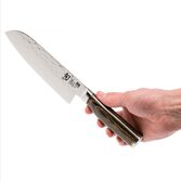 De kern van het KAI Shun Premier lemmet bestaat uit extreem hard VG Max-staal en is bekleed met 32 lagen Damaststaal. Deze combinatie van verschillende staalsoorten maakt dat de snede hard en tegelijkertijd ook elastisch is. Het aan beide zijden geslepen mes is door zijn lage gewicht comfortabel in het gebruik en staat garant voor zuivere en nauwkeurige snijeigenschappen. Het handgehamerde oppervlak - in Japan bekend als Tsuchime - wordt niet alleen omwille van esthetische redenen aangebracht, want dankzij de kuiltjes ontstaan er tijdens het snijden kleine luchtspleetjes die het loslaten van het snijgoed van het lemmet vergemakkelijken.