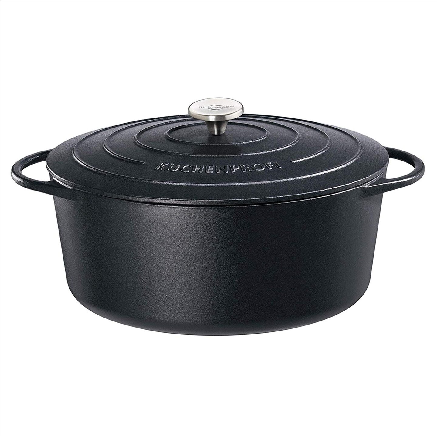 Deze Klassieke ovale braad-/stoofpan 35 cm van Küchenprofi is onmisbaar in iedere keuken. Met de gietijzeren pannen van Küchenprofi Provence haal je kwaliteit in huis. Dit Duitse merk bestaat al sinds 1923, maar de pannen worden tot op de dag van vandaag op traditionele wijze vervaardigd. De gietijzeren braad-/stoofpannen van Kuchenprofi zijn zeer vriendelijk in gebruik. Ze zijn geschikt voor alle warmtebronnen, inclusief inductie. De warmte in de Provence braadpan wordt gelijkmatig verdeeld over het gerecht, hierdoor worden voedingstoffen goed bewaard en komt het gerecht optimaal op smaak. De rvs knop op de deksel zorgt ervoor dat de pan ook in de oven gebruikt kan worden tot 250 graden en de grotere handvatten zijn speciaal ontworpen voor een goede grip. De Provence pannen zijn geëmailleerd waardoor ze gemakkelijk schoon te maken zijn.