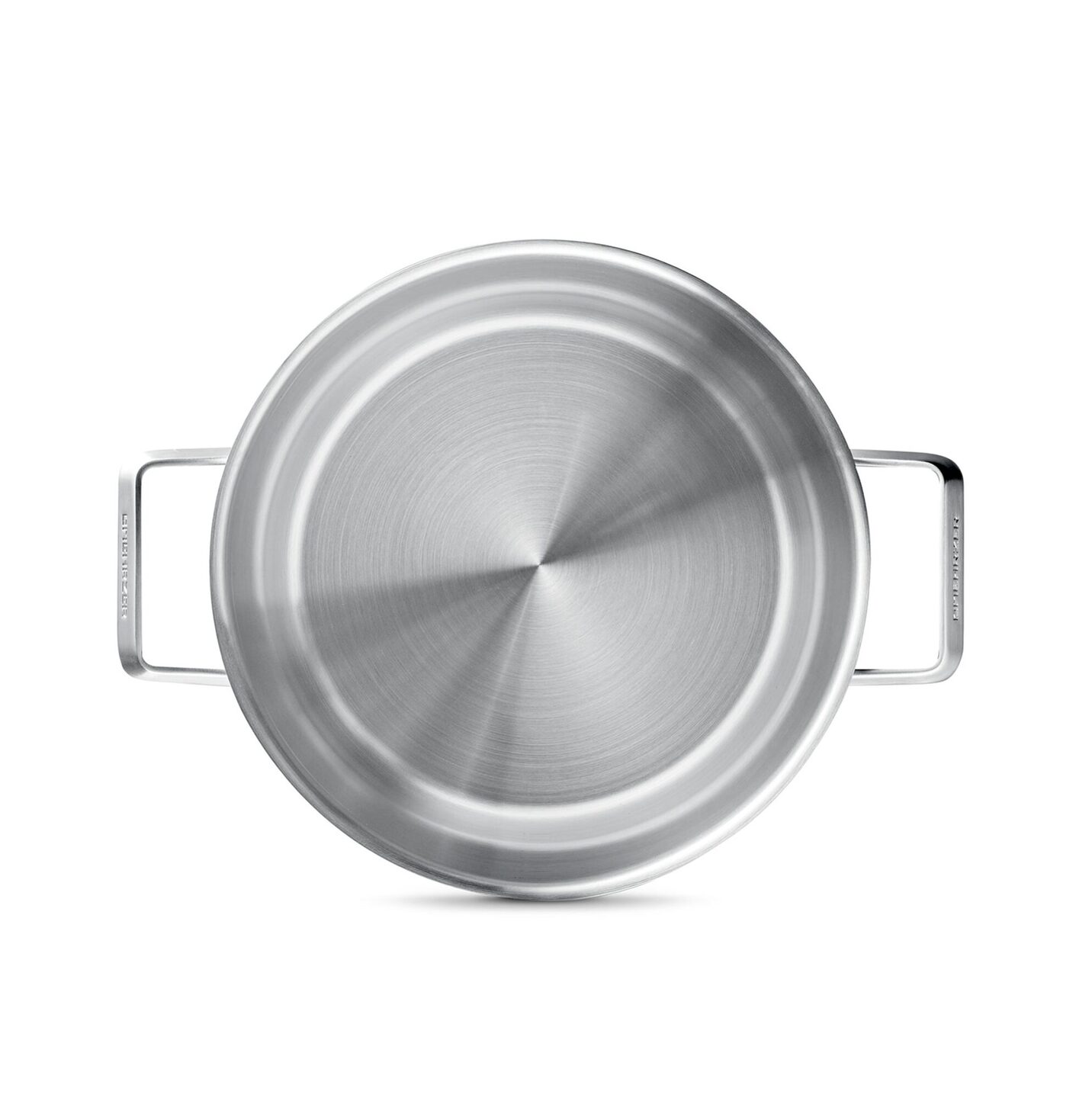 Mehrzer Berlin Premium hoge Soeppan 24 cm is zeer functioneel en voldoet ook aan de hoogste eisen van de moderne keuken. De Mehrzer pannenserie bevat 3 kookpannen met daarnaast een grote soeppan, een steelpan en een braadpan in verschillende hoogtes en diameters. De Berlin pannen zijn stabiel en solide. De 3-laags Impact Bonding bodem bevat een kern van 9 mm zuiver aluminium, is geschikt voor alle warmtebronnen en heeft het predicaat Inductie Premium gekregen.
