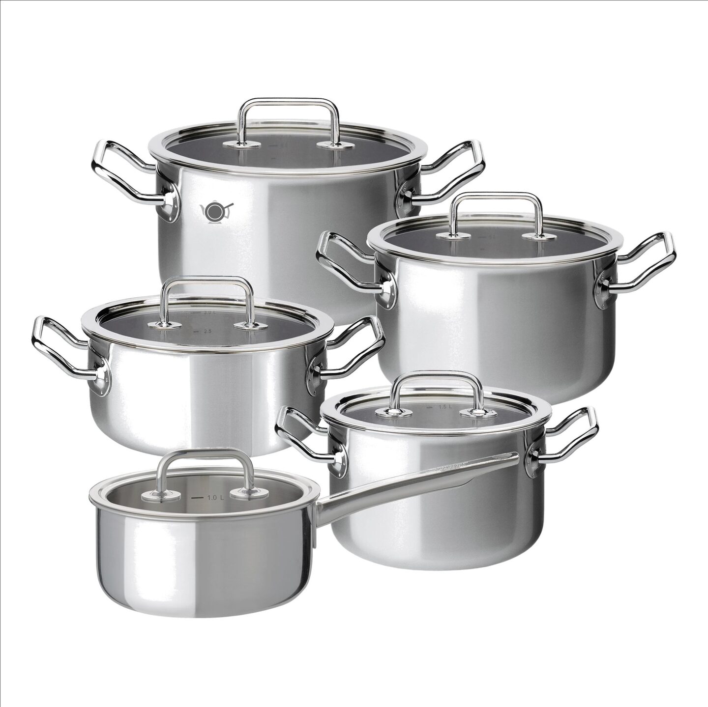 Spring Brigade Basic pannen - Het Zwitserse merk Spring maakt al ruim 30 jaar de mooiste pannen welke veelal gekenmerkt worden door hun 5-laags sandwichbodem constructie. De buitenste laag van deze Spring Brigade Basic 5-delig pannenset is gemaakt van inductie geschikt roestvrij staal en bestaat uit 4 kookpannen en een steelpan met glazen deksel. De binnenlaag van de kookpannen is eveneens gemaakt van roestvrij staal en daartussen zit een 3-laags aluminium kern voor de optimale geleiding. Daarnaast geeft het glazen deksel u goed zicht op wat er tijdens het kookproces gebeurd.