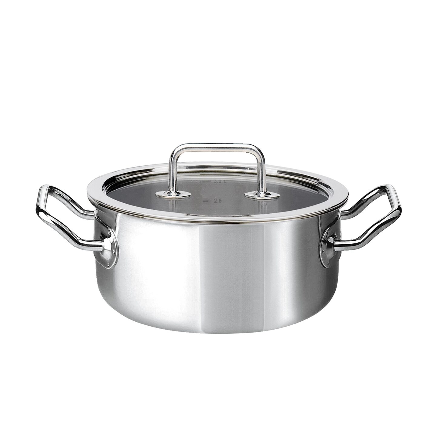 Spring Brigade Basic pannen - Het Zwitserse merk Spring maakt al ruim 30 jaar de mooiste pannen welke veelal gekenmerkt worden door hun 5-laags sandwichbodem constructie. De buitenste laag van deze Spring Brigade Basic kookpan laag 16 cm is gemaakt van inductie geschikt roestvrij staal. De binnenlaag is eveneens gemaakt van roestvrij staal en daartussen zit een 3-laags aluminium kern voor de optimale geleiding. Daarnaast geeft het glazen deksel u goed zicht op wat er tijdens het kookproces gebeurd.