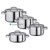 Warmtespreiding: Het beproefde 5-lagen materiaal garandeert een snelle reactie op de ingestelde temperatuur en biedt een optimale warmteoverdracht van bodem naar zijwand. De kookpannen worden zo gelijkmatig en rondom verhit, een unieke kookeigenschap voor energie- en tijdbesparend koken. De robuuste en ergonomische grepen zijn door de speciale constructie warmte-isolerend en zorgen voor een veilig en comfortabel gebruik. Glazen deksel: Het deksel van hittebestendig glas is ideaal voor energiebesparend koken met zicht op het kookgoed. Door de geïntegreerde zijdelingse openingen kan stoom worden afgelaten tijdens het inkoken, en gaat het afgietengemakkelijk, snel en veilig. Dankzij de siliconen afdichtring sluit het deksel bijzonder goed, een vereiste voor behoedzaam koken met aanhangend vocht. Hierdoor blijven vitamines en smaak behouden.