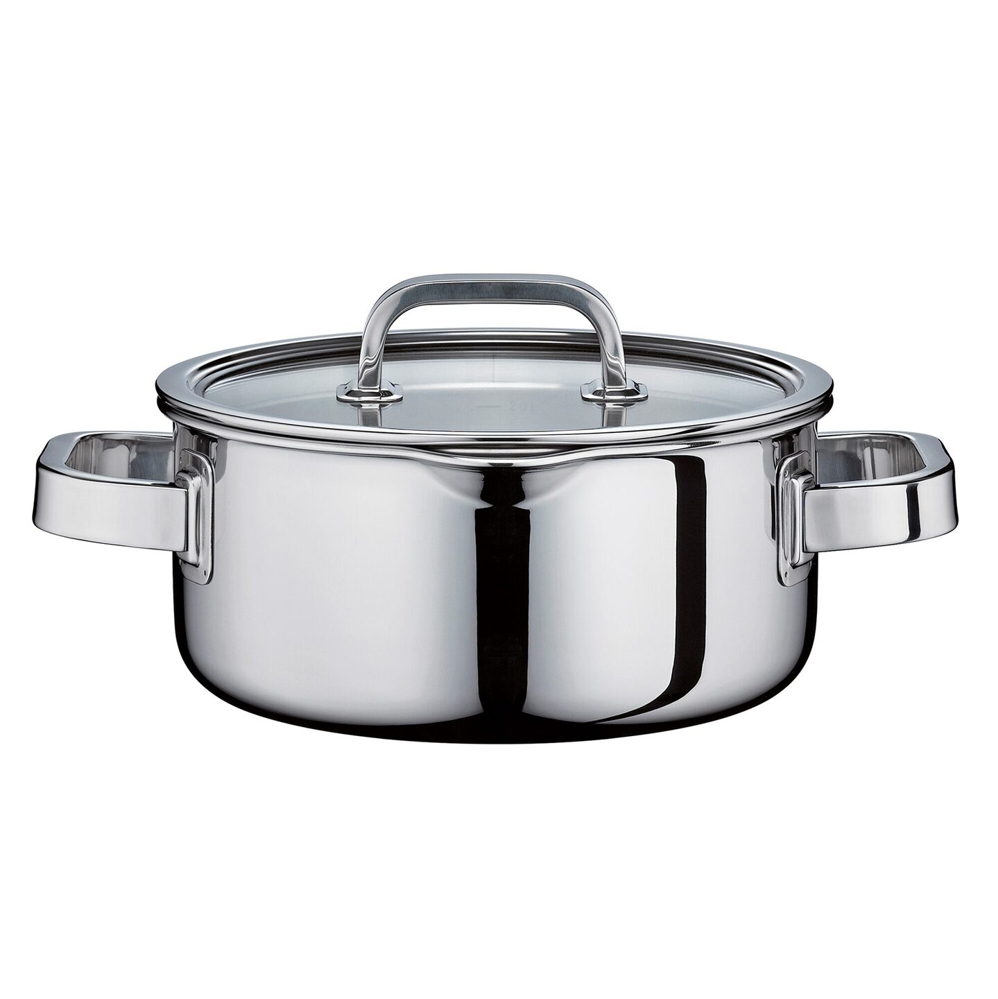 Warmtespreiding: Het beproefde 5-lagen materiaal garandeert een snelle reactie op de ingestelde temperatuur en biedt een optimale warmteoverdracht van bodem naar zijwand. De kookpannen worden zo gelijkmatig en rondom verhit, een unieke kookeigenschap voor energie- en tijdbesparend koken. De robuuste en ergonomische grepen zijn door de speciale constructie warmte-isolerend en zorgen voor een veilig en comfortabel gebruik. Glazen deksel: Het deksel van hittebestendig glas is ideaal voor energiebesparend koken met zicht op het kookgoed. Door de geïntegreerde zijdelingse openingen kan stoom worden afgelaten tijdens het inkoken, en gaat het afgietengemakkelijk, snel en veilig. Dankzij de siliconen afdichtring sluit het deksel bijzonder goed, een vereiste voor behoedzaam koken met aanhangend vocht. Hierdoor blijven vitamines en smaak behouden.