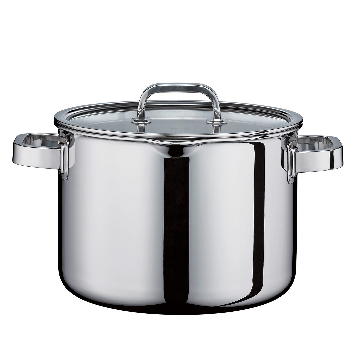 Warmtespreiding: Het beproefde 5-lagen materiaal garandeert een snelle reactie op de ingestelde temperatuur en biedt een optimale warmteoverdracht van bodem naar zijwand. De kookpannen worden zo gelijkmatig en rondom verhit, een unieke kookeigenschap voor energie- en tijdbesparend koken. De robuuste en ergonomische grepen zijn door de speciale constructie warmte-isolerend en zorgen voor een veilig en comfortabel gebruik. Glazen deksel: Het deksel van hittebestendig glas is ideaal voor energiebesparend koken met zicht op het kookgoed. Door de geïntegreerde zijdelingse openingen kan stoom worden afgelaten tijdens het inkoken, en gaat het afgietengemakkelijk, snel en veilig. Dankzij de siliconen afdichtring sluit het deksel bijzonder goed, een vereiste voor behoedzaam koken met aanhangend vocht. Hierdoor blijven vitamines en smaak behouden.
