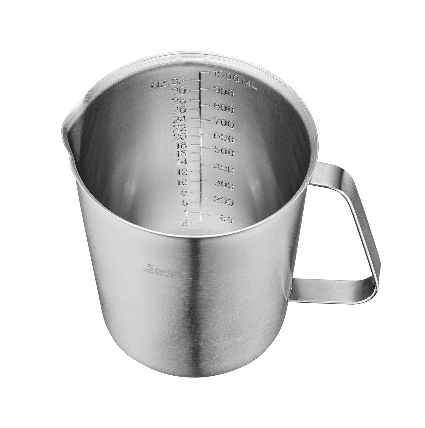 Met de Spring Tools maatbeker haal je precisie en comfort in huis. Deze robuste roestvrijstalen maatbeker heeft een royale inhoud van 1 liter en is voorzien van een praktische binnenverdeling in zowel milliliters als ounces. Dankzij de ergonomische greep ligt hij stevig in de hand, zelfs bij intensief gebruik. De schenktuit zorgt voor drupvrij en gecontroleerd schenken, ideaal voor koken en bakken zonder knoeien. Gemaakt van hoogwaardig edelstaal is deze maatbeker niet alleen hygiënisch, maar ook extreem duurzaam. Met een hoogte van 13 cm en een diameter van 12,5 cm is hij compact én ruim tegelijk. De stijlvolle, robuuste afwerking maakt hem een onmisbaar hulpmiddel in elke keuken. Kies voor kwaliteit en precisie met Spring Tools.
