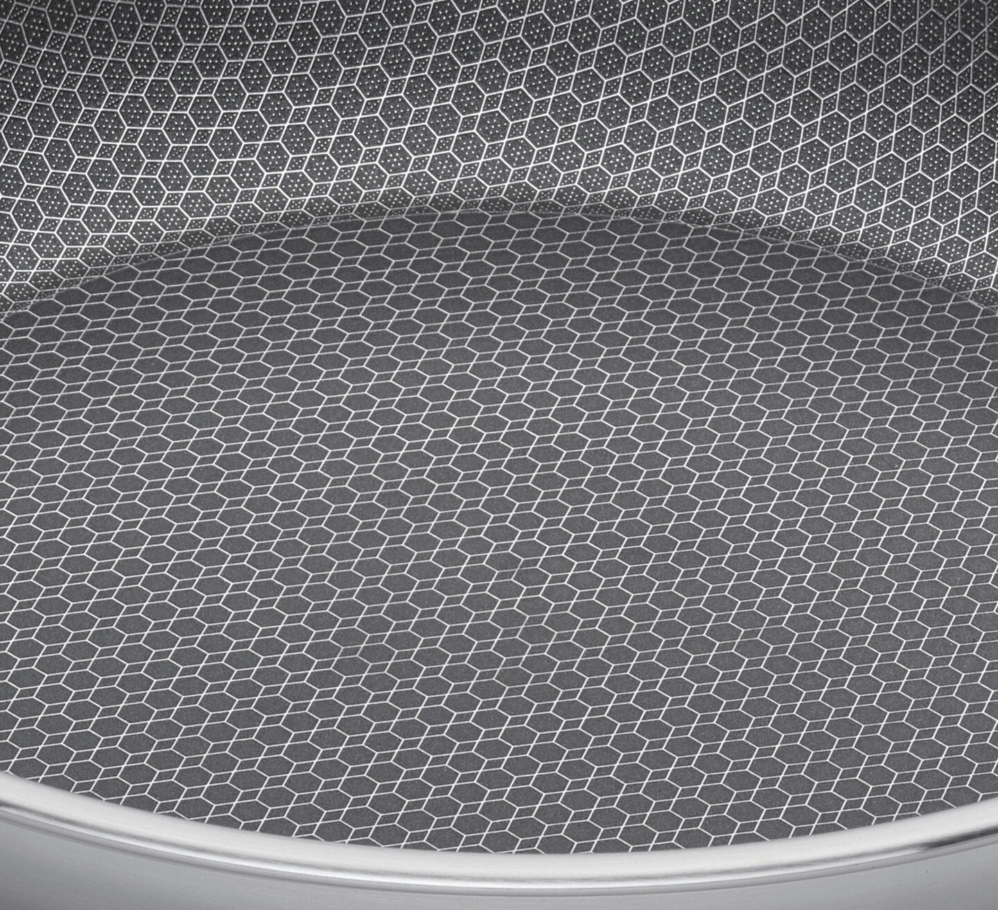 • Antiaanbaklaag: Speciale honingraatstructuur van RVS die de ceramische antiaanbaklaag beschermt en deze een lange levensduur geeft.